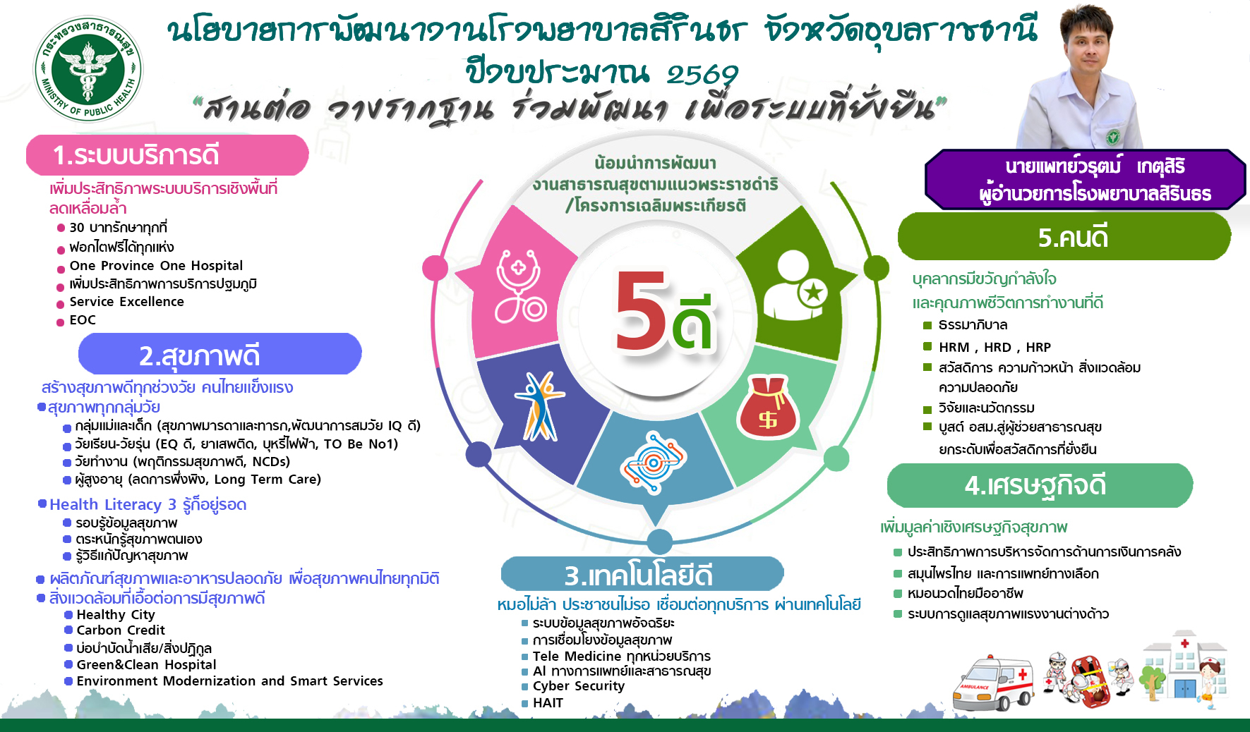 | ----------------------2.1.2.5 นโยบายผู้อำนวยการโรงพยาบาลสิรินธร ปี 2569 (นายแพทย์วรุตม์ เกตุสิริ) | |